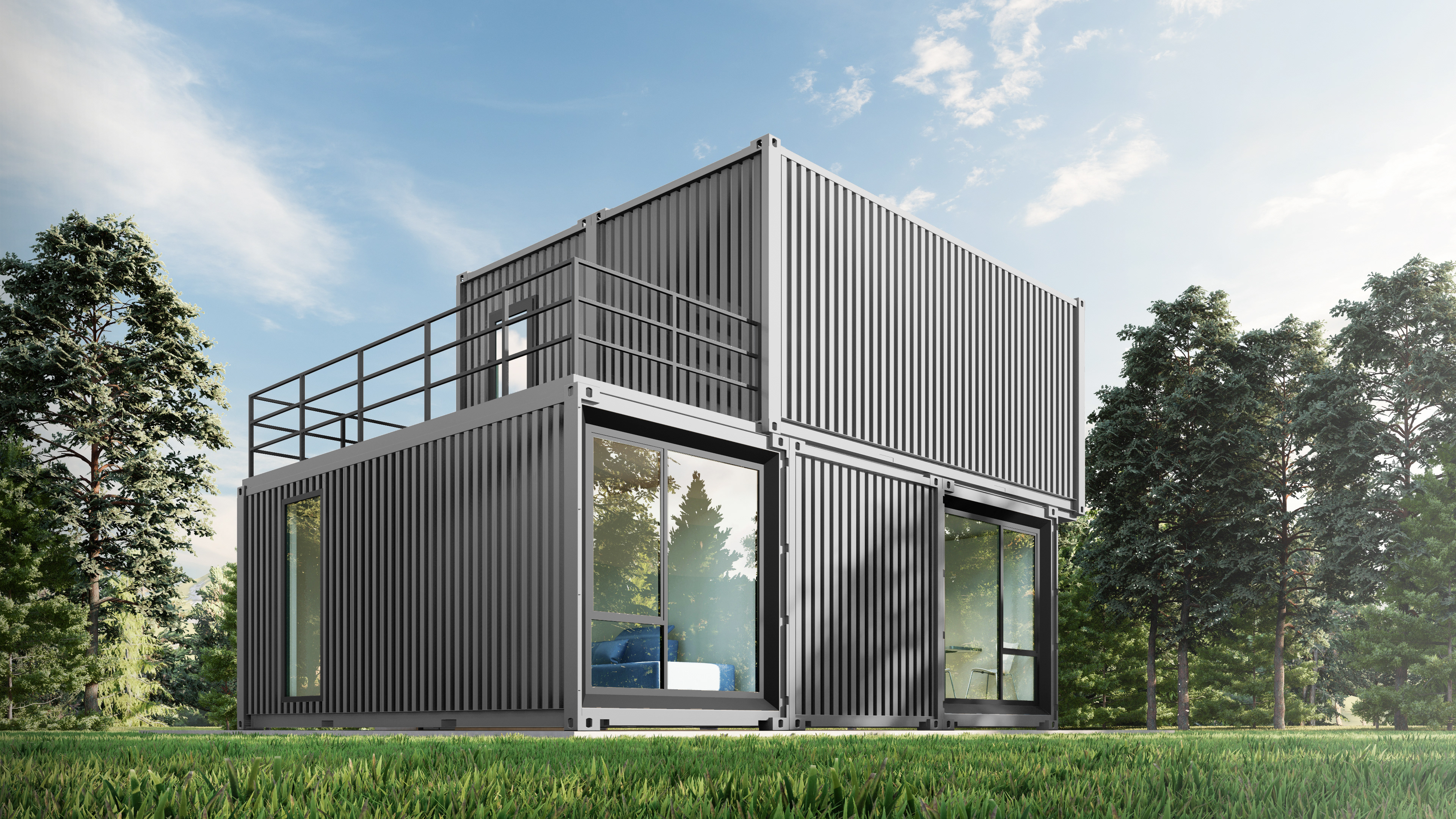 Container house with 2 bedrooms, kitchen, living room and bathroom